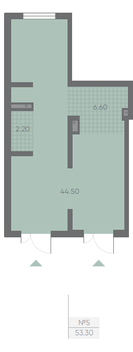 Коммерческое помещение № 53.3м² Ручьи, 2 очередь, дом 19 этаж